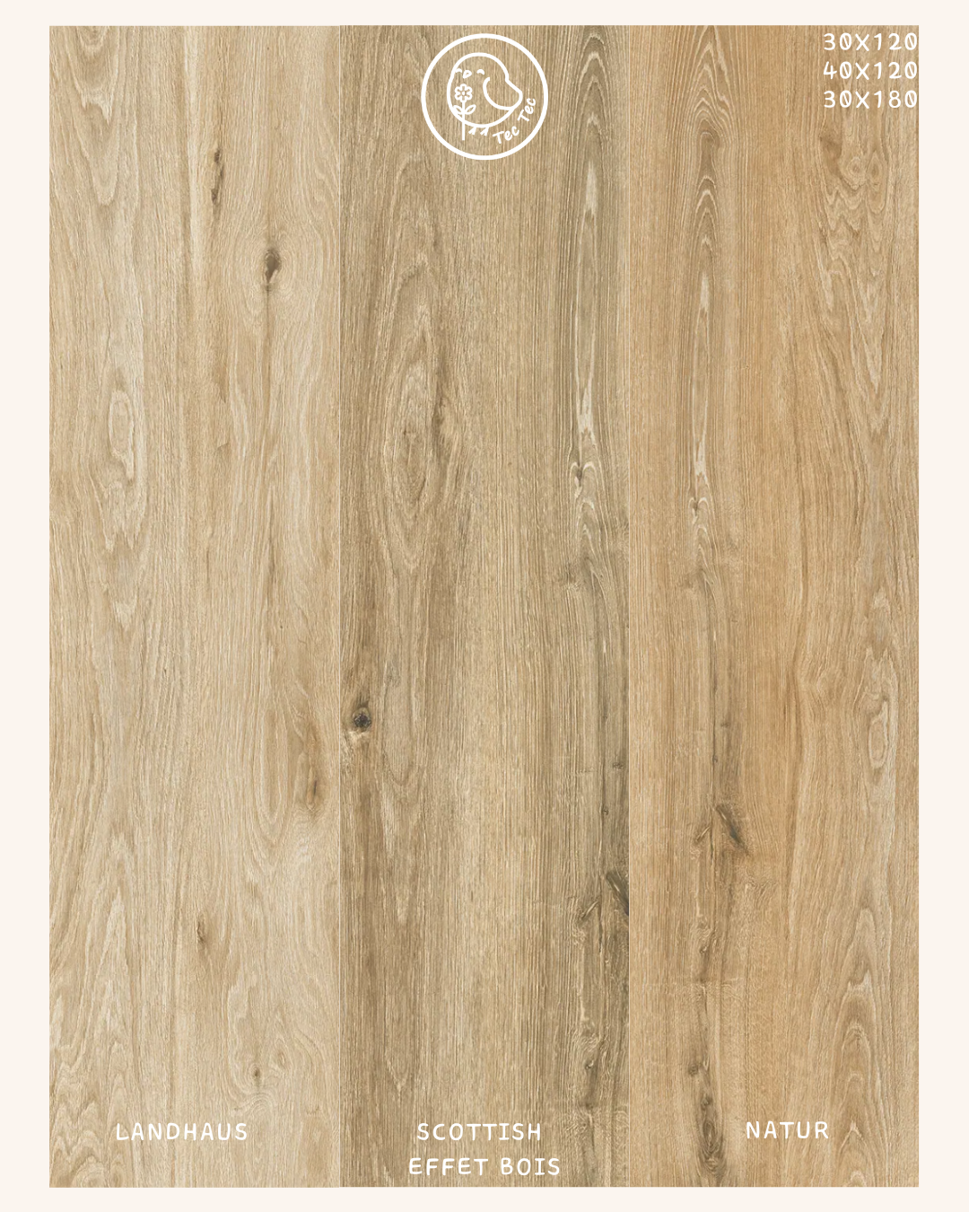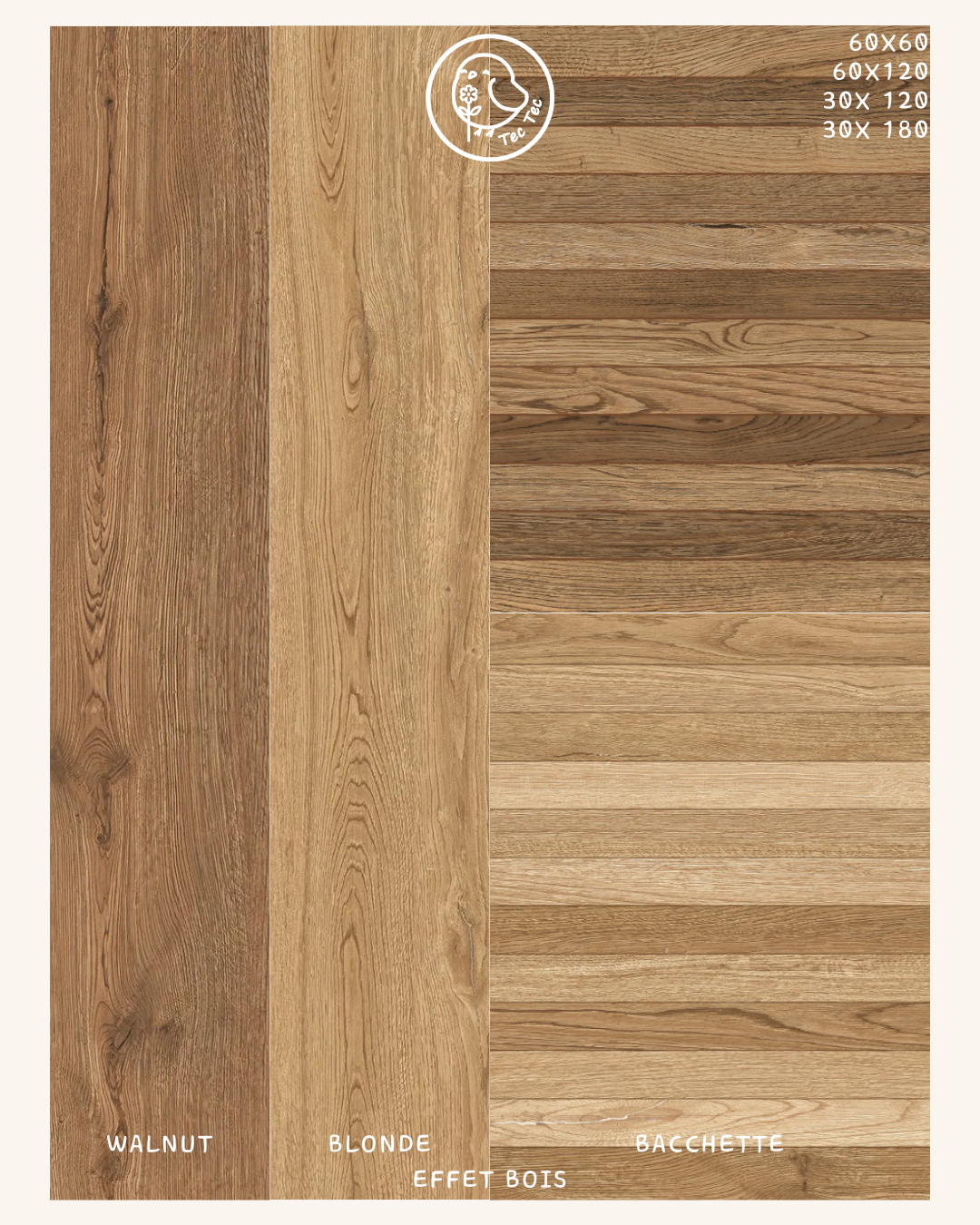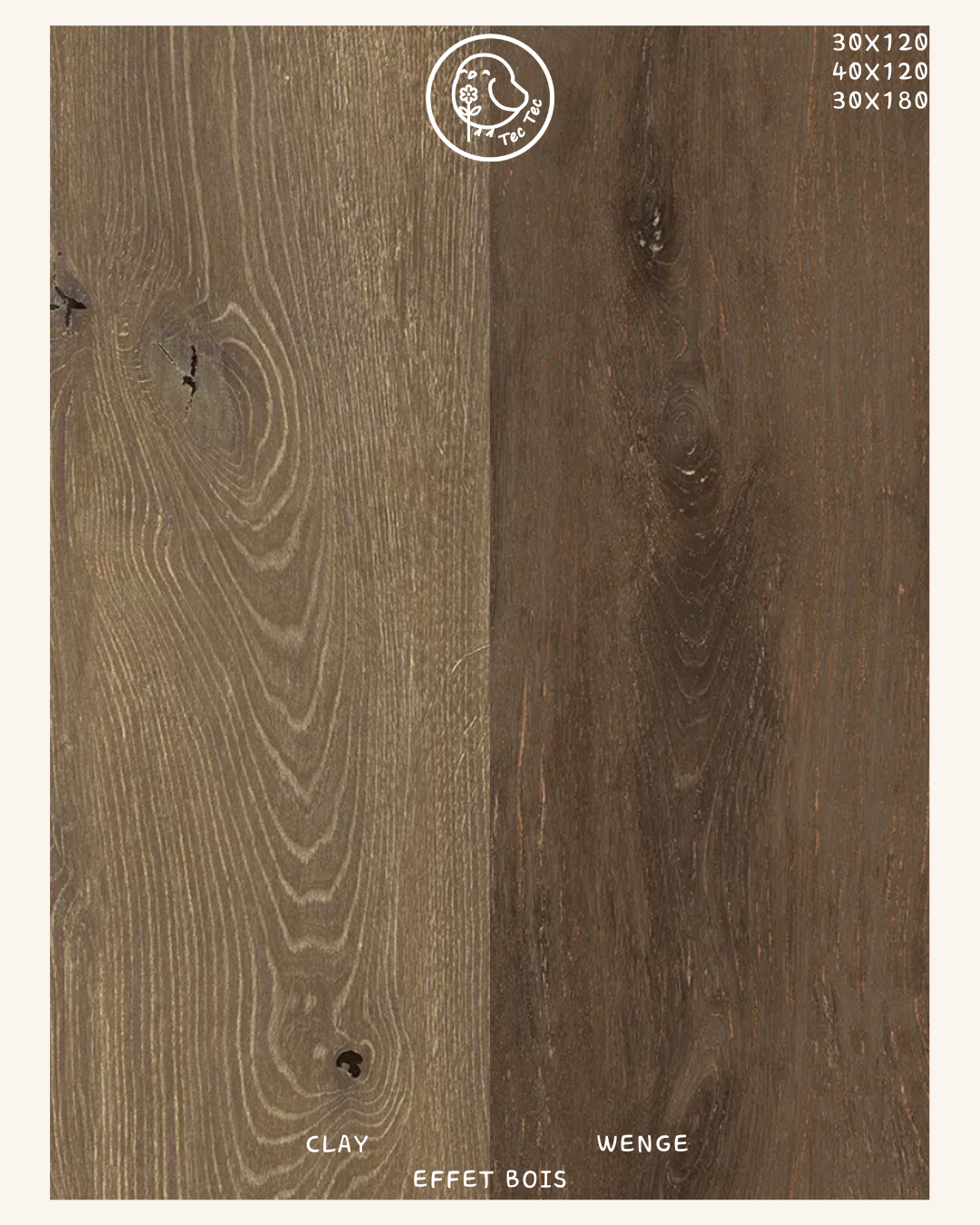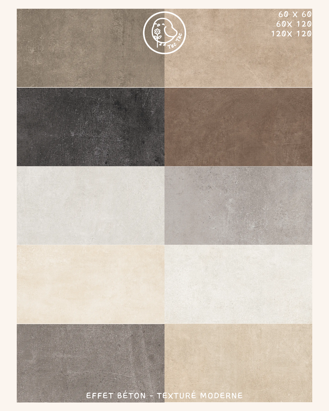 Les dalles ont également une multitude de is, styles : effets bois, ciment, pierre, béton, etc.